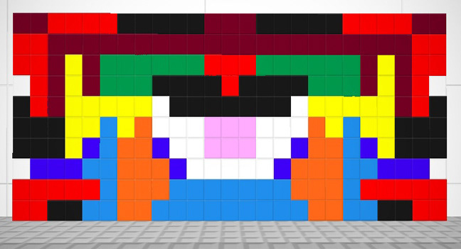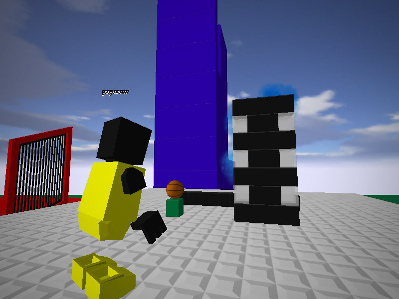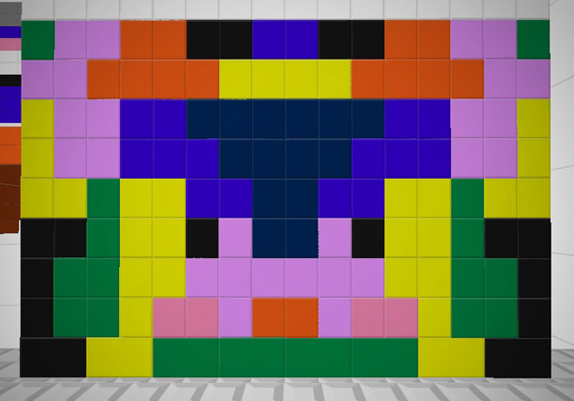 "Utilizing a busy online multiplayer game called Blockland, created by Eric Hartman, I set to work in painting and sculpting in game, painting with digital bricks and a paint tool. I wandered studios tremendously more spacious than were physically available to me and invited others to join me in the study of geometric abstraction."