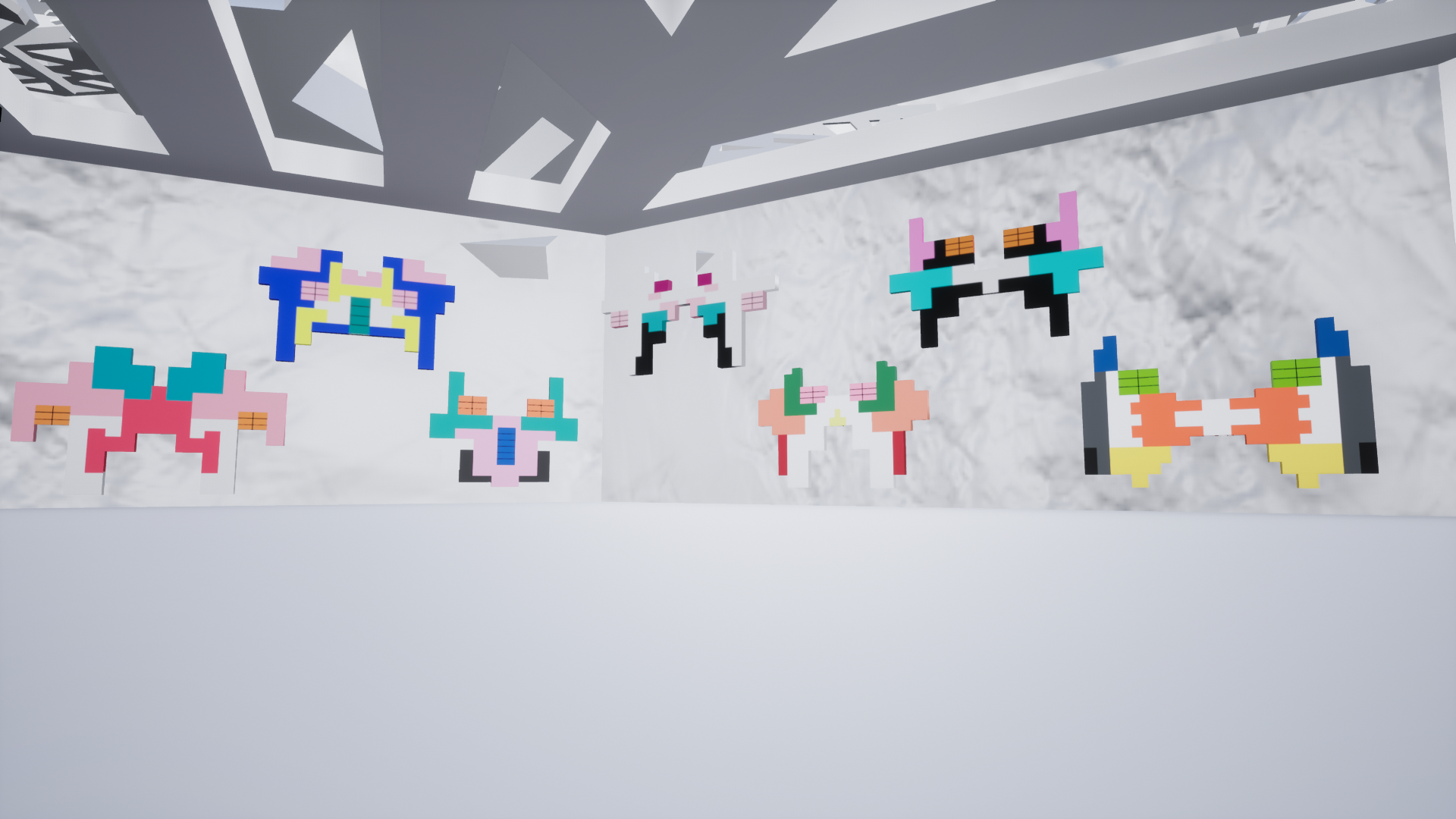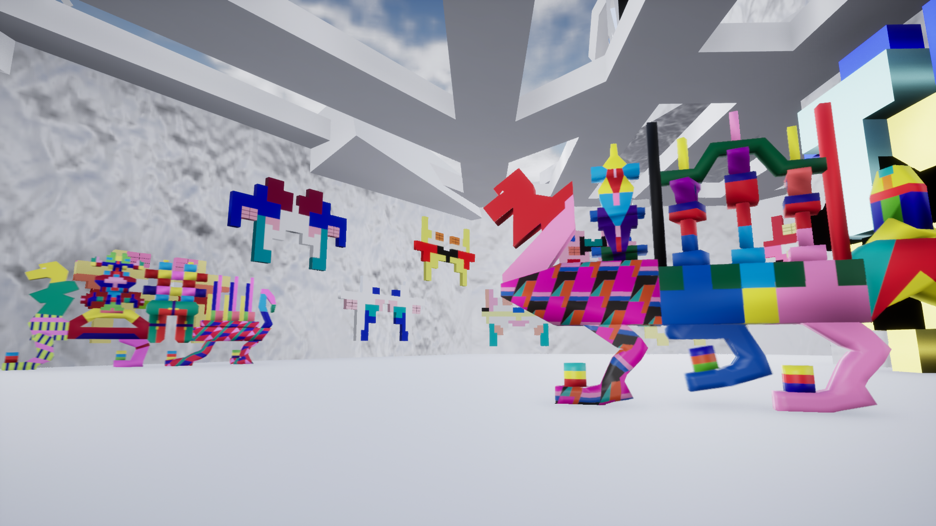 Dragon on a Snowflake is an interactive experience produced in collaboration with the Virtual Dream Center. With music by Cory Hanson the video game project showcases paintings from Jon Merritt’s Dragonblage series brought to life 3-dimensionally and animated in an ecosystem with other artworks and creatures drawn from the artist’s repertoire. Using video game development tools, this project attempts to investigate an underlying theme of his geometric art practice, the subterranean relationship between geometric art and the natural world.
